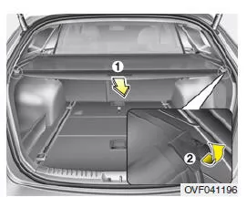 1. Ziehen Sie die Laderaumabdeckung mit dem Griff (1) in Richtung Fahrzeugheck.